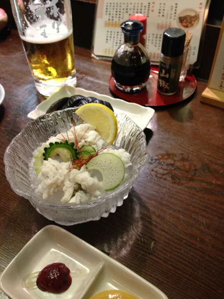 恒例のハモの湯引きとトロットロのだし巻き、鶏のパリッパリ焼き~だし巻き、とっても美味しいの❤このだし巻きと味噌汁、ご飯がついたセットがお得~☆