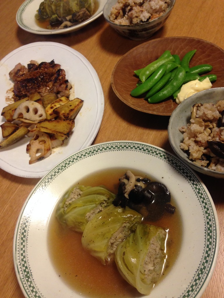 大きめのロールキャベツになってしまった場合は1つのロールキャベツを4等分くらいに切って皿に盛ると食べやすいです。しみじみと美味しい和風ロールキャベツ、寒い日の晩ご飯にオススメです☆